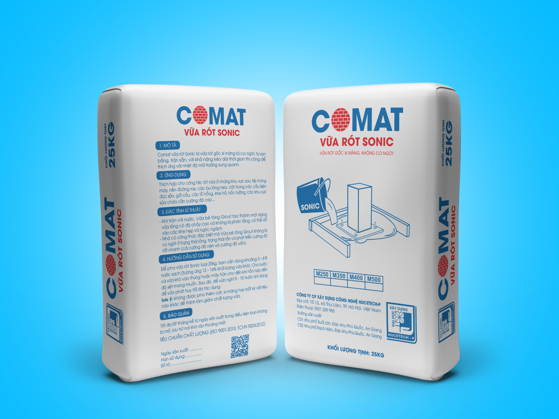 Comat vữa rót Sonic là vữa không co ngót, không tách nước, có cường độ cao và độ chảy tối ưu, sản xuất tại Công ty Cổ phần Xây dựng Công nghệ NUCETECH-P.